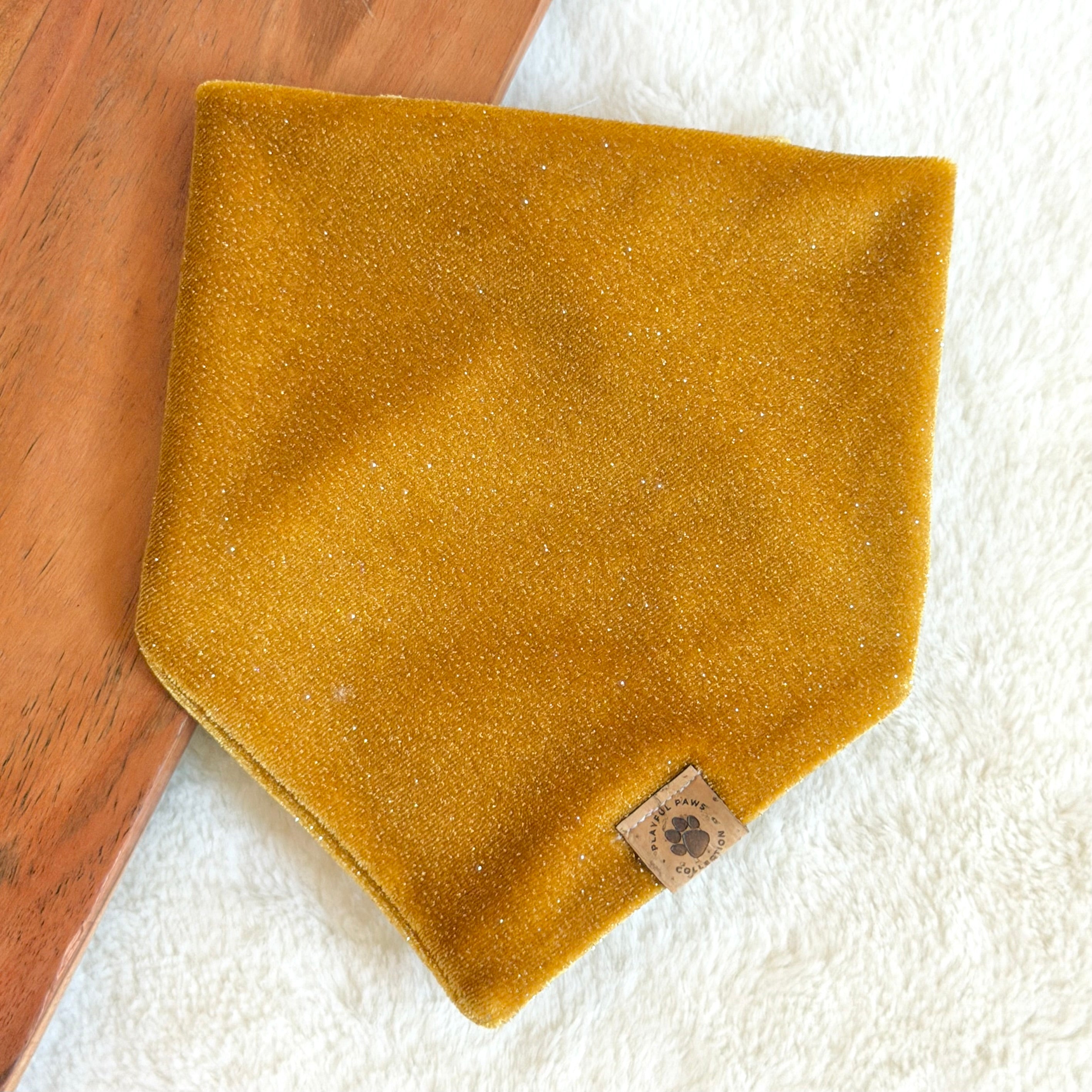• Our Gold Glitter Velvet bandana is a cute and neutral print for the holiday season and every day wear! Features a luxury light-weight velvet fabric with glitter for the extra pizzazz ✨