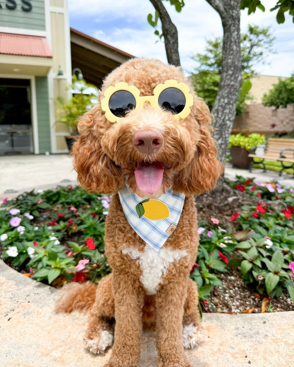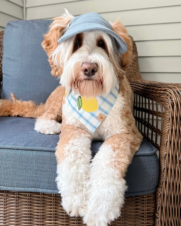 - Our Main Squeeze bandana is a fun and neutral print for summer and everyday wear! Features a lemon patch on a light blue plaid.