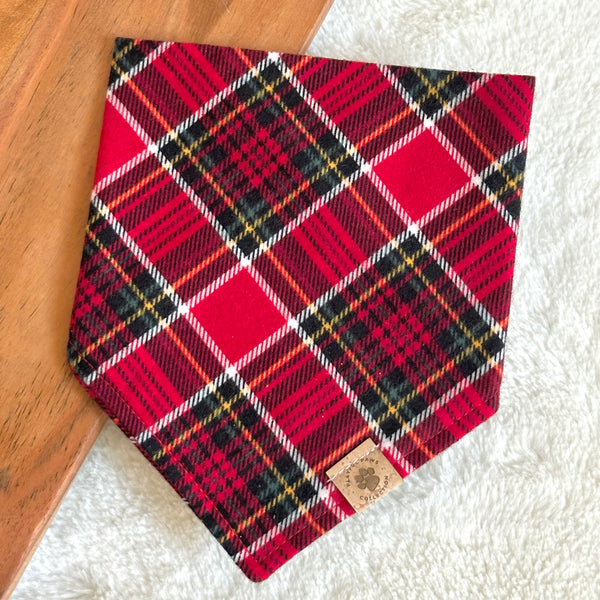 - Our Tis the Season flannel bandana is a cute and neutral print for the holiday season! Features a traditional red and green tartan plaid. Personalize it with a holiday or letter patch. See our 'Add-ons' page.
