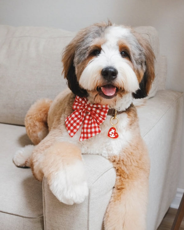 - Our Berry Red Gingham bow comes with a cotton fabric and stabilizer for that extra plush & to hold their shape on all of your pup’s adventures!