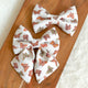 NOTE: Size, shape, and pattern placement may vary due to the handmade nature of each bow, the type of fabric used, and how the fabric was cut.
