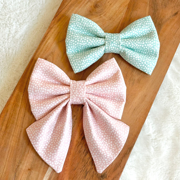- Our Coral + Seafoam bow comes with a cotton fabric and stabilizer for that extra plush & to hold their shape on all of your pup’s adventures!