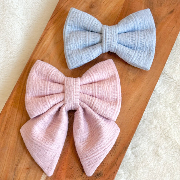 Light Pink and Blue Cable Knit Bow