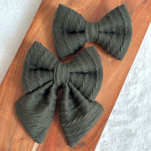 - Our Olive Green Cable Knit bow comes with a lining fabric and stabilizer for that extra plush & to hold their shape on all of your pup’s adventures!