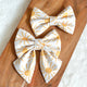 NOTE: Size, shape, and pattern placement may vary due to the handmade nature of each bow, the type of fabric used, and how the fabric was cut.