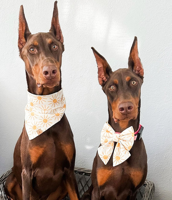 - Our Rays of Sunshine bow comes with a cotton fabric and stabilizer for that extra plush & to hold their shape on all of your pup’s adventures!