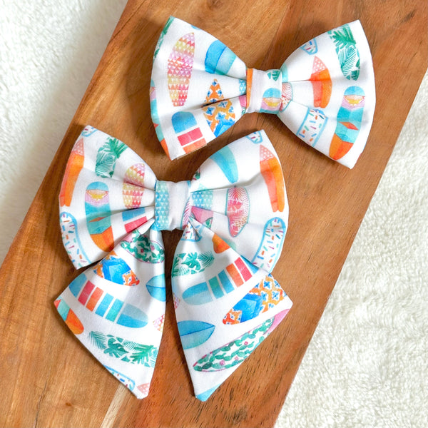 • Our Surf’s Up bow comes with a cotton fabric and stabilizer for that extra plush & to hold their shape on all of your pup’s adventures!