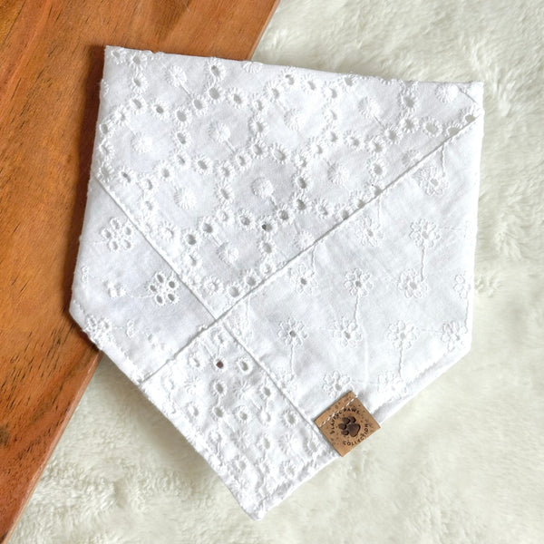 - Our Eyelet Patchwork bandana is a cute and neutral print for summer and every day wear! Features a beautiful white, lightweight eyelet patchwork design.