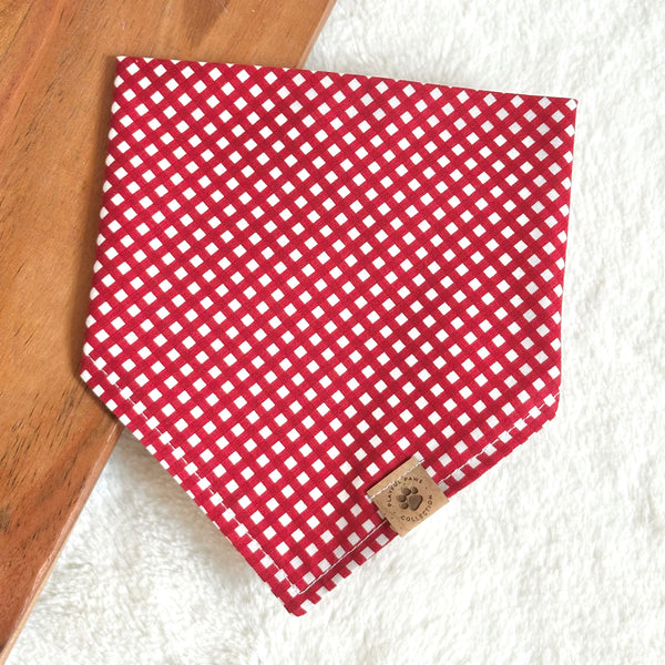 - Our Apple Red Micro Gingham bandana is a cute and neutral print for fall and every day wear! Features a classic dark red micro gingham pattern.