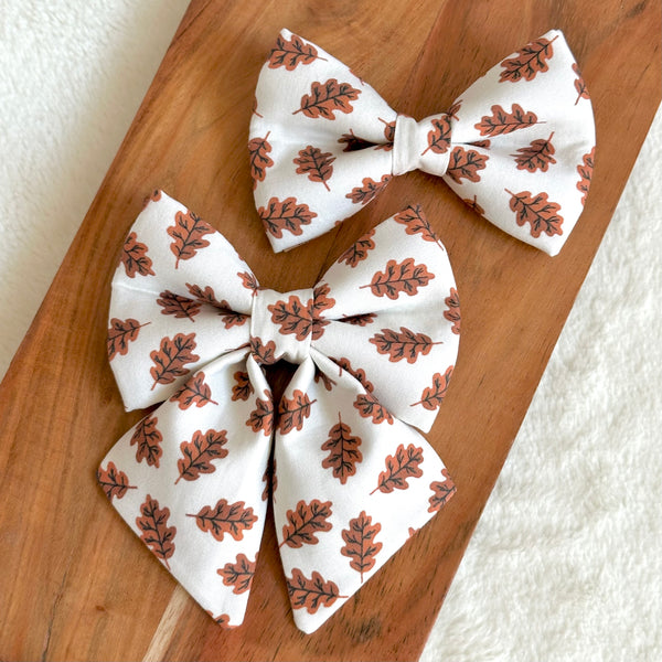 - Our Oak Leaves bow comes with a lining fabric and stabilizer for that extra plush & to hold their shape on all of your pup’s adventures!