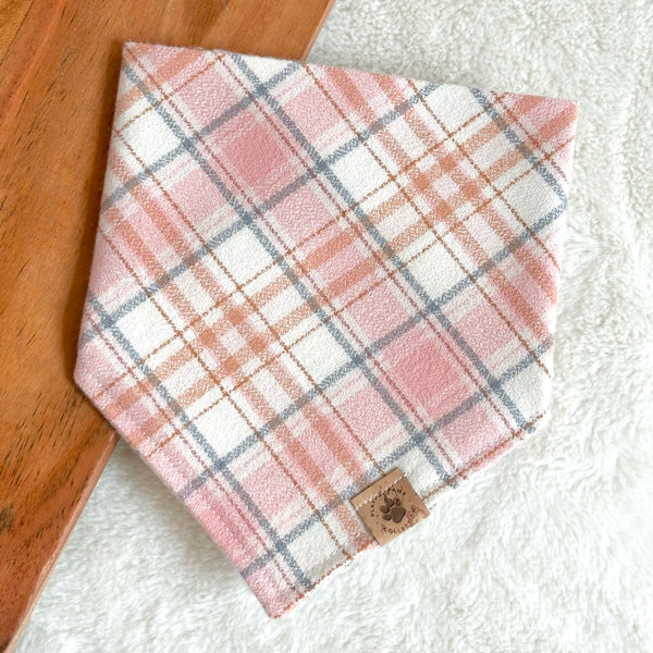 - Our Blushing Pink Plaid Flannel bandana is a cute and neutral print for every day wear! Features a medium-weight flannel fabric with a pastel pink, grey, and tan plaid. It's great worn on by itself or you can personalize it with a matching light pink labubu plush patch. See our 'Add-ons' page.