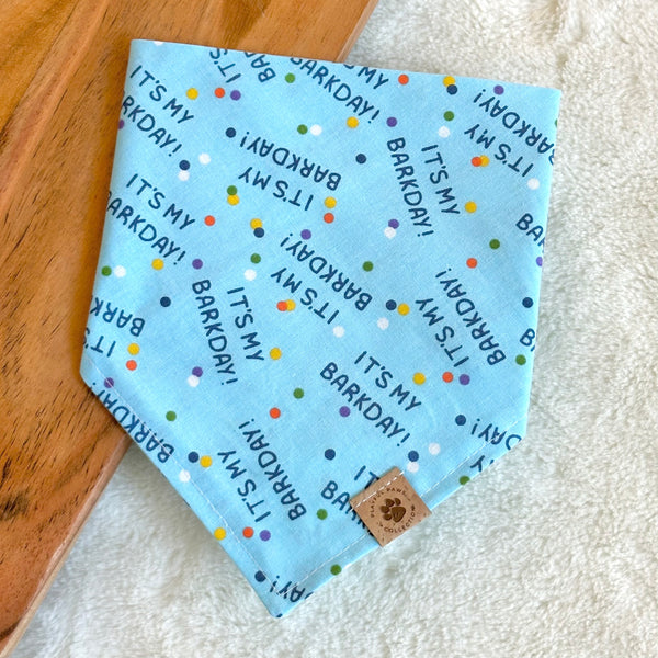 - Our It's My Barkday bandana is great for any paw-ty pup!