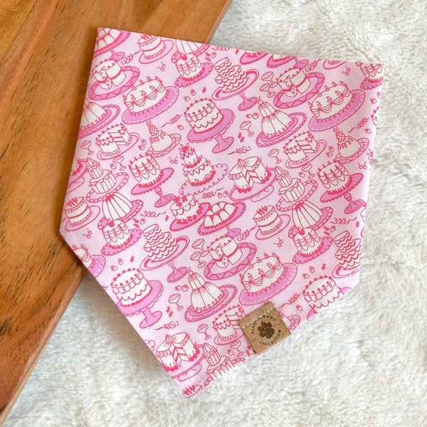 - Our Sweet Celebration bandana is a cute and neutral print for any special occasion! Features various cakes on a pink background.