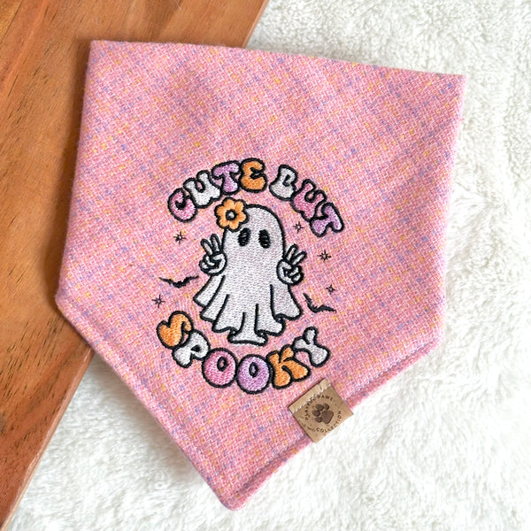 - Our Cute but Spooky embroidered bandana is a cute and neutral print for Halloween and this spooky season! Features a floral ghost with "cute but spooky" in pink, purple, orange, and white embroidered on a medium-weight pink plaid flannel fabric.