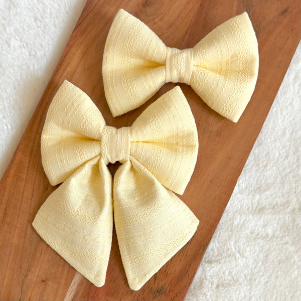 NOTE: Size, shape, and pattern placement may vary due to the handmade nature of each bow, the type of fabric used, and how the fabric was cut.