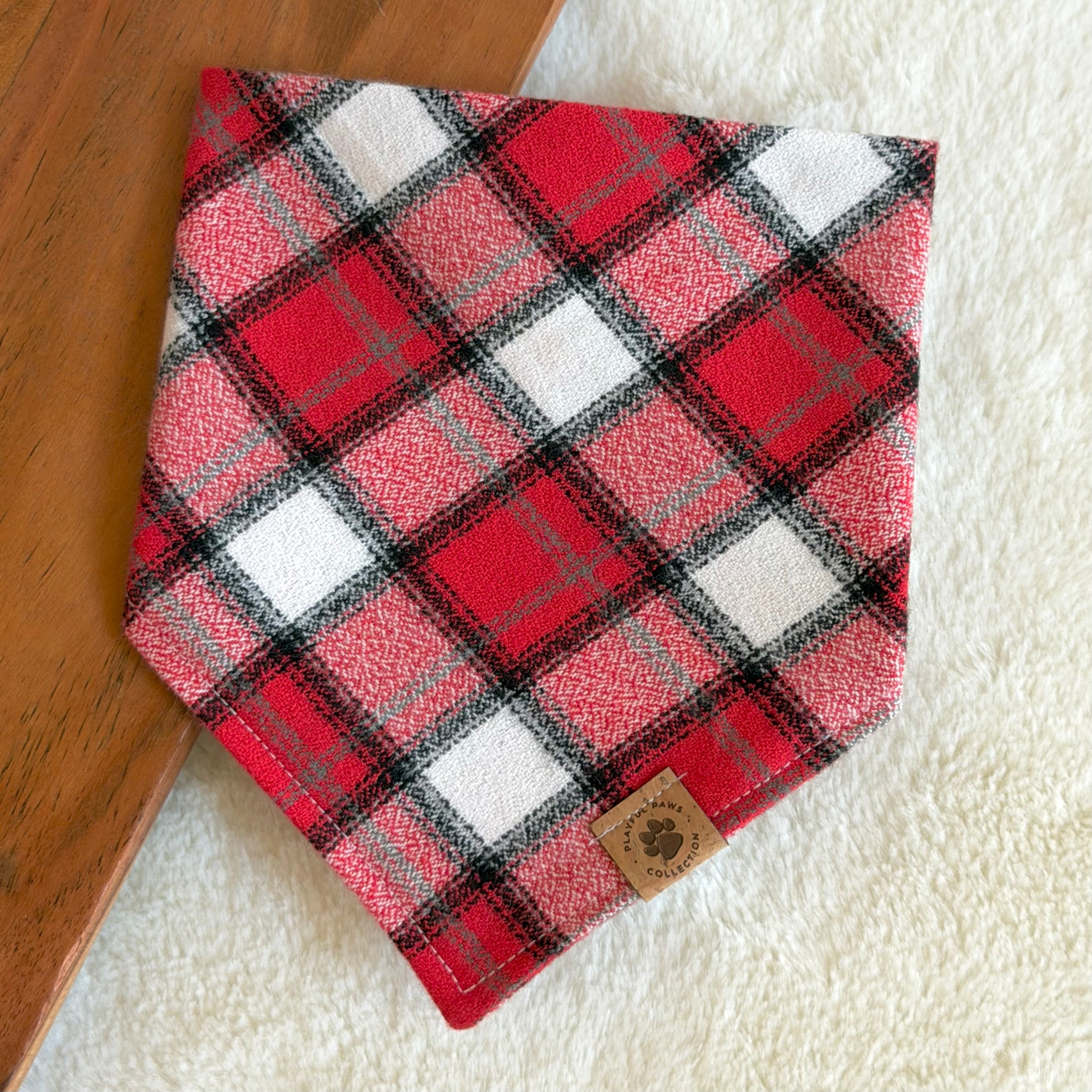 - Our Heritage Red Plaid Flannel bandana is a cute and neutral print for the holiday season and every day wear! Features a medium-weight flannel fabric with a classic red, grey, white, and black plaid.