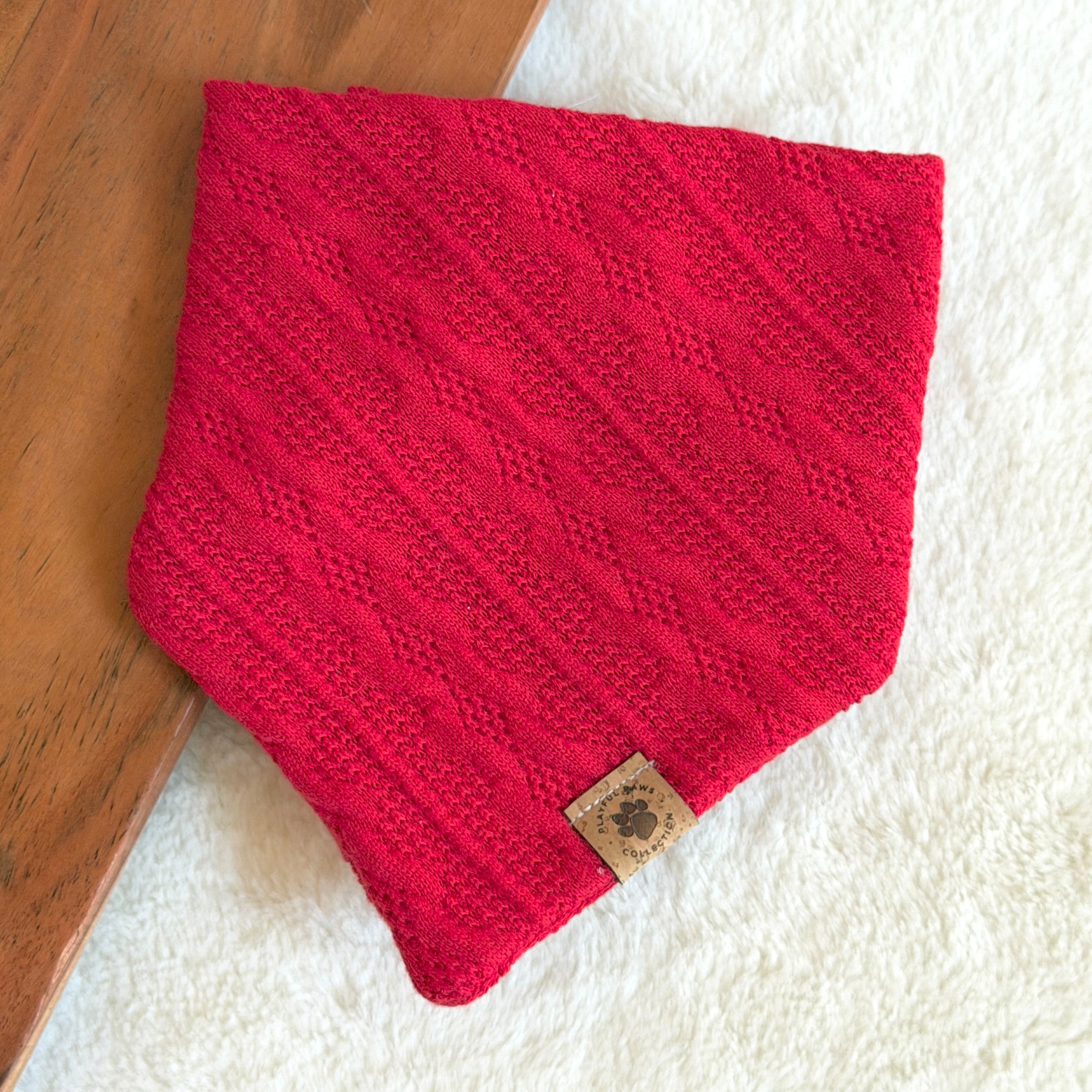 - Our Red Cable Knit bandana is a cute and neutral print for the holiday season! Features a light-weight cable knit fabric that is soft and cozy.