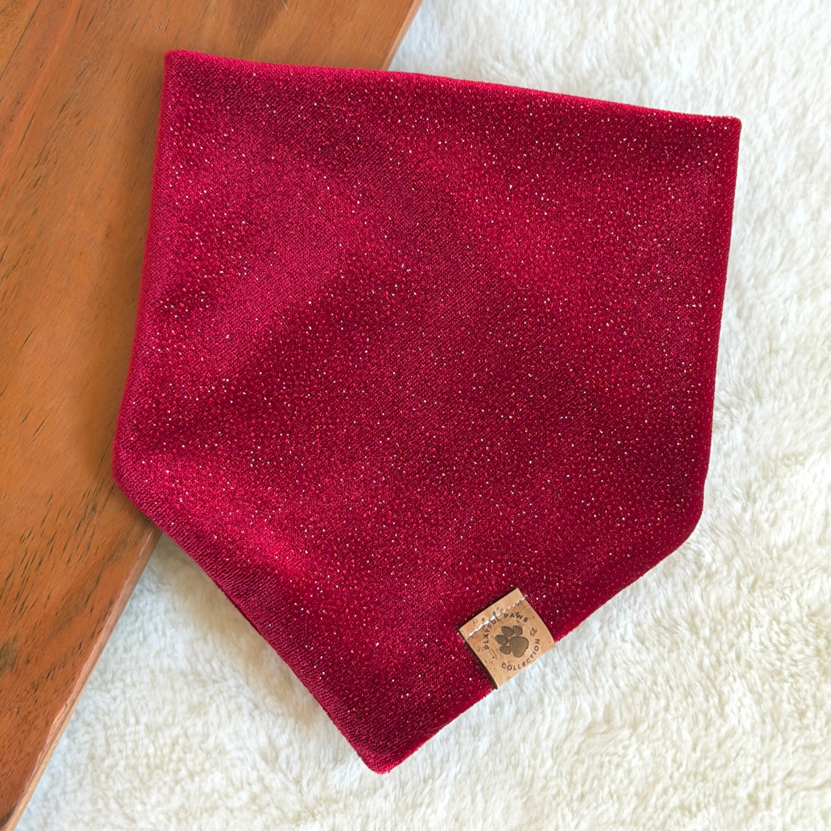 - Our Red Glitter Velvet bandana is a cute and neutral print for the holiday season and every day wear! Features a luxury light-weight velvet fabric with glitter for the extra pizzazz ✨