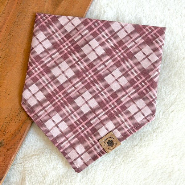 • Our Rosewood Plaid bandana is a cute and neutral print for every day wear! Features a classic pink, mauve, and burgundy tartan plaid.