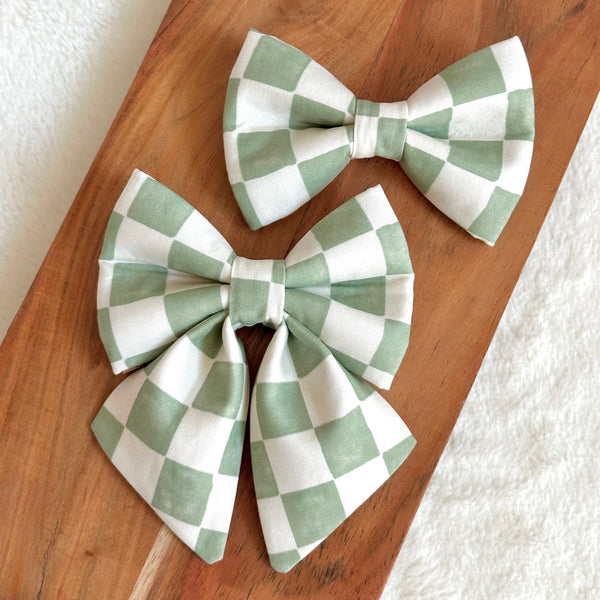 Sage Checkered Bow