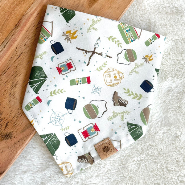 - Going camping for the weekend and need a bandana for your pup? Our Camping Essentials bandana would be an excellent choice!