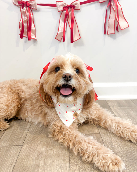 Embroidered Hearts Gingham Bandana