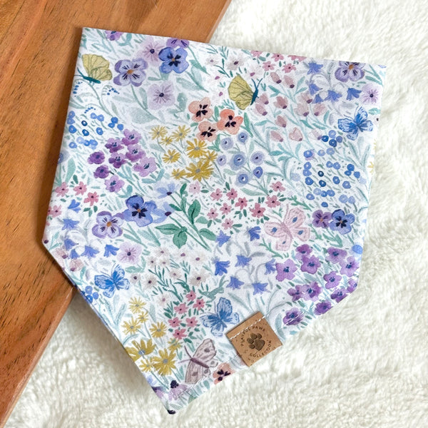 - Our Butterfly Meadow bandana is a cute and neutral print for spring and every day wear! Features cool-toned florals and butterflies on a white background.