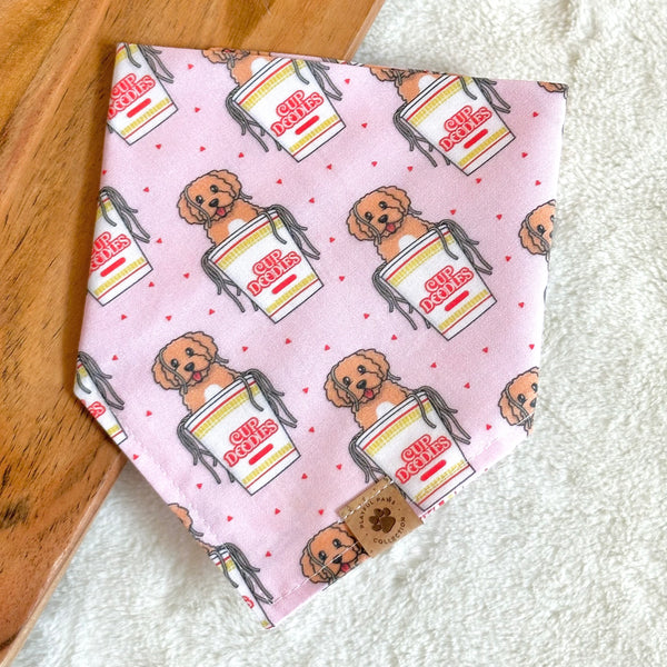- Our Cup Doodle bandana is a cute and fun print to celebrate AAPI month and for every day wear! Features classic cup noodles with tan doodles on a pink background.
