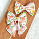 NOTE: Size, shape, and pattern placement may vary due to the handmade nature of each bow, the type of fabric used, and how the fabric was cut.