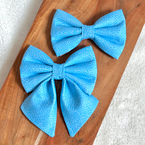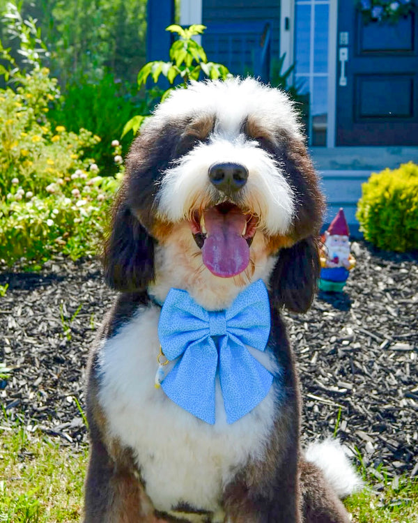 - Our Splish Splash bow comes with a cotton fabric and stabilizer for that extra plush & to hold their shape on all of your pup’s adventures!