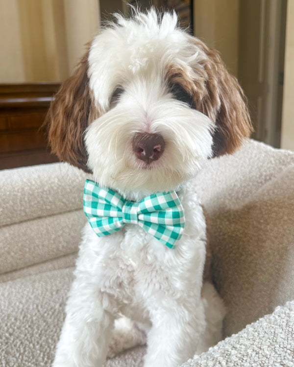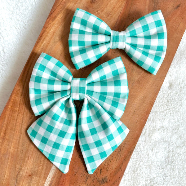 - Our Teal Gingham bow comes with a cotton fabric and stabilizer for that extra plush & to hold their shape on all of your pup’s adventures!