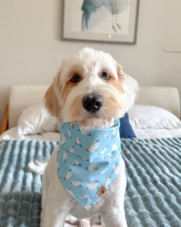 - Our Watch Your Snacks bandana is a fun and cute print for summer and every day wear! It's perfect for any pup who's always ready to take flight at first bite of your chips and snacks. Features various seagulls on a sky blue background.