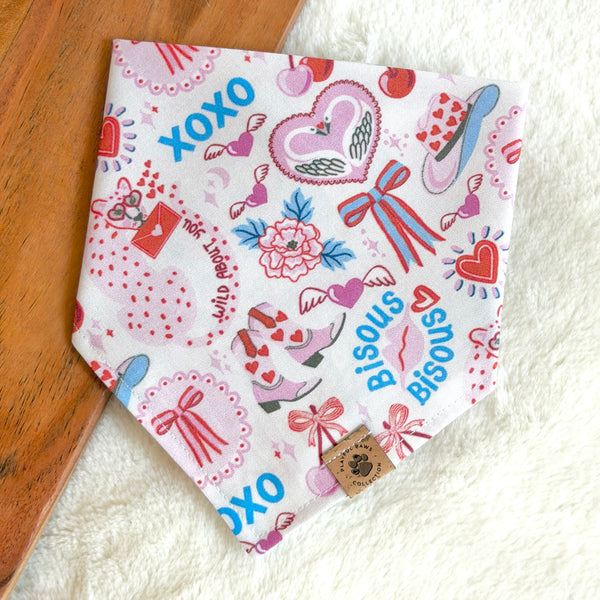 - Our Wild About You bandana is a cute and neutral print for Valentine's Day and love season! Features various quirky icons in blue and pink from cowgirl hats and boots, coquette bows, swans, cherries, and a leopard holding a love letter on a white background.