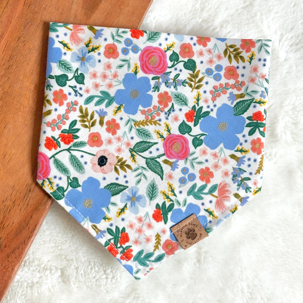 - Our Floral Garden bandana is a cute and neutral print for summer and every day wear! Features various colorful floral designs with metallic accents on an off-white background.