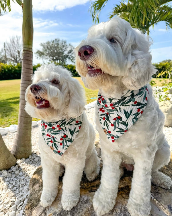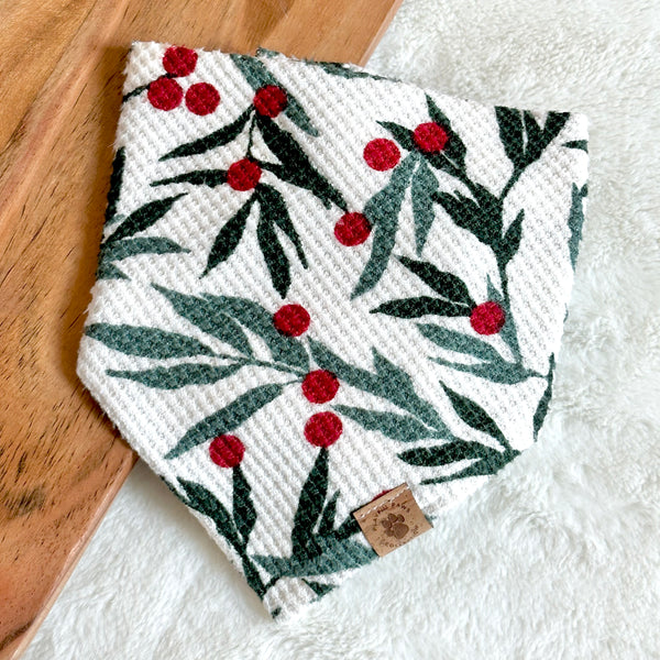 - Get ready for some free sloppy kisses whenever your pup is wearing our Mistletoe waffle knit bandana this holiday season!